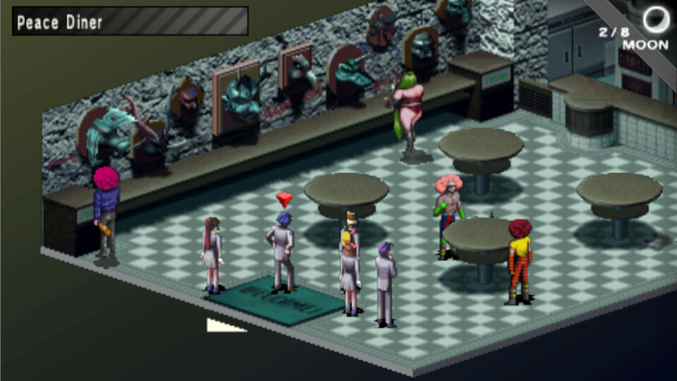 Entering from the south, there is an Agastya Tree in the first room on the left, so you can save your game. Feel free to upgrade your gear at the various shops here, and when you are ready, head to Peace Diner in the western section of the mall. Talk to everyone to get a better understanding of what's going on here.When ready, save your game and head into the door next to the casino, Judgement 1999, for a dungeon, Kama Palace.