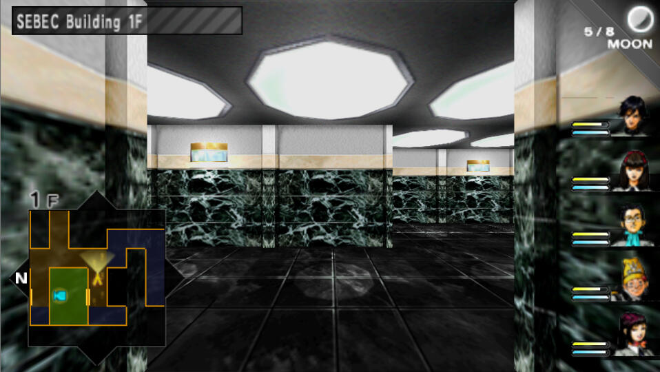 You will now shift into 1st person perspective. Use the mini-map in the bottom left of the screen to help keep track of where you are.In this game, you can have 5 party members total. In the SEBEC route, there are 4 set in stone: MC,
