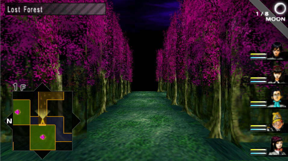 Straight ahead as you enter, there are a bunch of rooms that will help prepare you to go directly into another dungeon. The first room on the right is an Agastya Tree, behind it is a Velvet Room. On the left side of the hall is a Fairy Spring and a General Store. When you're ready, take the elevator to 2F.On 2F, head east, south, east, north, and south at the fork and keep heading south until you see a room to the west. Enter. Open the three chests to obtain Muscle Drink x4, Chewing Soul x2, Repulse Bell. Go ahead and retrace your steps back to the elevator and take it up to 3F now.On 3F , head south until you reach the fork. We are heading east here, but just FYI, if you were to go west and through the gate north, there is a hole that makes you fall down to 1F if you need to go back to save, heal, etc. Anyway, head east at the fork, through the open area, and take the first hallway that leads south. keep following this path until you see a staircase to the west and go down these stairs to 2F.On 2F, it's a pretty easy path so just follow it north and back south until you reach another staircase. Take them down to 1F.On 1F, head west and a bit south to find an Agastya Tree room. When you're ready, go ahead and go back east from the room and head north. When you hit the fork, head west and then north and try to work your way to the east side of the map to find another set of stairs. There is a screenshot below to help since this floor is a bit complex. Take the stairs up to 2F.