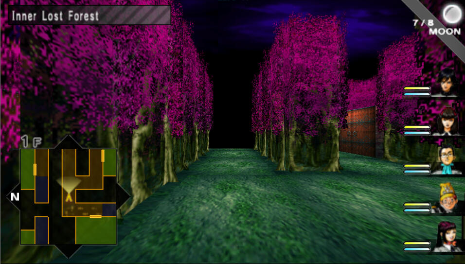 The first stop is one screen north, at Mana Castle. After the cutscene, head back to the Mikage Subway. You're making your way back through to that boss room, through to the other side, and back to the other entrance to make your way to the 1st Ward again.When you emerge, just head north one screen to find the Lost Forest. There is an Agastya Tree next to it, so you can save before entering. Enter the forest when you are ready.From the entrance, west is an Agastya Tree, south is a Fairy Spring, and east is where you need to go. So use those if you need to, but keep note that there are spinning tiles in this map that rotate you. As you head east from the entrance, take the second path that goes south. Follow this path up to the northeast corner, then keep following it south from that corner. Keep heading south past the square hallways until you see a long hallway going east and west. Follow it west and then south and enter the room to find 8 chests. Only open the 4 chests in the image below to obtain Gottabe Shoes, Fomor Lineage, Metal Card, and Moonstone.