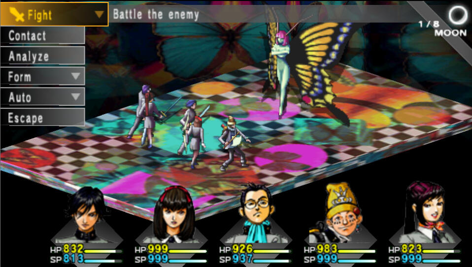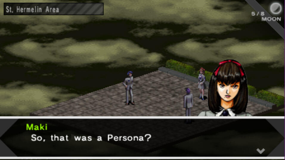 After entering, there is a short cutscene. Once it's over, go ahead and enter the door. Maki is in Room 302 so just head straight to 3F and enter the second door on the right.After some scenes, you will find yourself looking at the battle screen for the first time. This first battle happens automatically like a cutscene. After the battle you will all level up, go ahead and allocate your MC's points however you like. The other party members will auto-allocate their points. Once the scenes are all over and you're in control again, speak to everyone if you like, and then exit the room.There will now be random encounters. Please note that the Analyze feature does not take up a turn, and all you have to do to unlock the details for each creature is defeat them in battle once. From then on, you'll have all their weaknesses and info when you encounter them again. This is a crucial and very useful feature.The Contact feature allows you to enter a negotiation with the demons to gain various things such as items, or healing. But the most important thing here is Spell Cards. To get their Spell Cards, you must raise their eagerness (yellow) to max. This is honestly kind of hard to figure out on your own, so I have included a complete guide on what to say to each specific persona hereTurn south and enter the first room around the corner to find the 2F Nurse's Center. Open the chests to find Medicine x6 and QQ Helmet x2. Equip the helmets, exit the room, and head west. Enter the room around the corner to find an Agastya Tree. When finished, head up the stairs to 3F.Follow the path until you reach the second fork. Enter the Nurse's Station to the right and open the chests to find DisPoison and QQ Helmet x2. Equip the helmets on your other two team members, then exit the room. Head down the halls northwest until you find the stairs. Go downstairs to 2F.Follow the left hallway around to the first room you see to find another Agastya Tree. Then, head straight east to find another set of stairs. Go down the stairs to 1F.Hug the corner around to the right and follow the hallway until you reach a fork. Take a right at the fork and you'll find a room with a doctor in it. He will heal you, so this hallway is a great spot to grind a bit before moving on. I recommend doing so. Your personas will rank up faster if you use their skills in battle. Make sure to open the chest to find Medicine x2.Once you are ready to move on, take the other path from that fork until you reach a room straight ahead at another fork. Enter to find an Agastya Tree. Go around to the room behind this to find the Reception Desk.After the cutscene you'll have the option to save the nurse or not. If you decide to save the nurse, Elly will arrive and you'll fight some zombies. Saving the nurse is one of the crucial “moral” choices that will affect the ending. This is also an automatic battle that gives a lot of exp, so I recommend trying to save the nurse. Elly will temporarily join the party afterward. If you're not planning to use her as your 5th member, then give her weapon to MC. Exit the hospital then head south to the next screen, keeping in mind that there are now random encounters on the City Map.