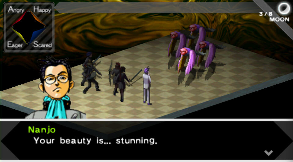 Scared: Sing (MC), Taunt (Mark), Ignore (Reiji)Wise, Forceful, Haughty (Male): Principality, Naga, Dominion, Xiuhtecuhtli