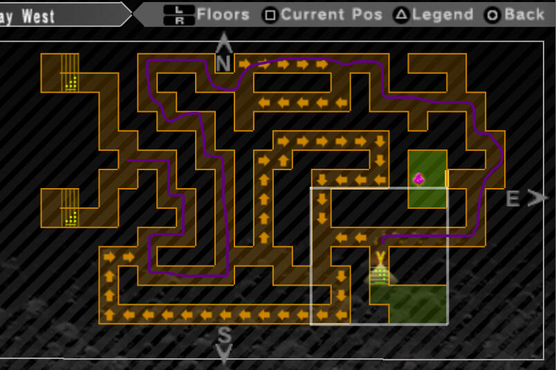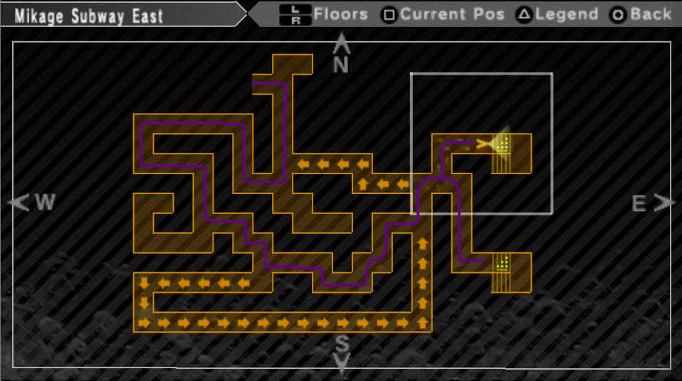 Mikage Subway is pretty big, and there are traps on the ground that force you to move, which can be annoying. After you walk into these traps, they appear on the map with arrows showing what direction they go. There is only one correct path through here. I went ahead and included an image below because it's a bit hard to explain with words.