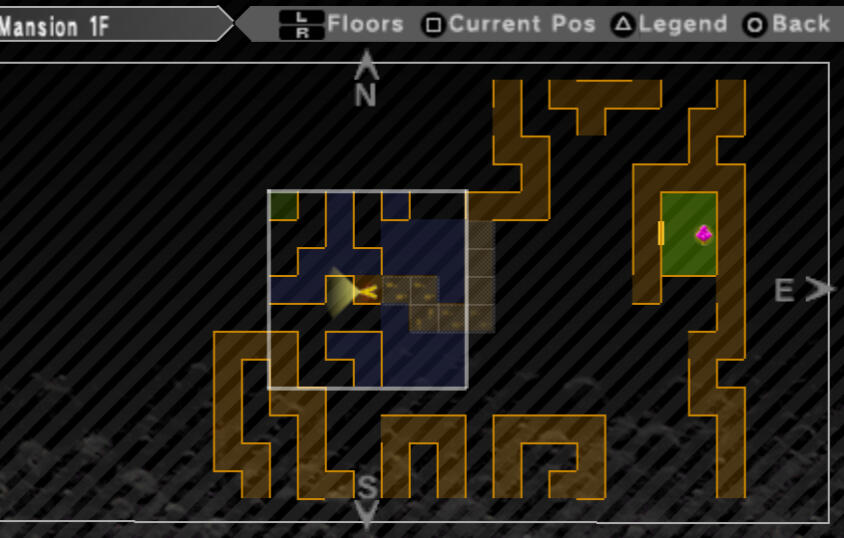 You are at a fork directly when you enter. Head west and zig zag north and south through the hall until you eventually reach the staircase. Take the stairs up to 2F.On 2F, take the east path at the fork to find a room. You can talk to the scientists for some details about the situation here. There are two chests in here, open the one by the painting to obtain Vi Incense. The other chest is empty, so go ahead back to the hallway.From here, back track back down the stairs all the way to the entrance of the mansion. Take the east path of the fork this time. make your way northeast and north and you'll find a room with an Agastya Tree. Save your game, of course. From here, continue north, then west, then south to the big dark room. Another one of those. Your directions from the tile directly outside are: 4S, 2W, 1N, 2W. Pretty simple. Screenshot below.
