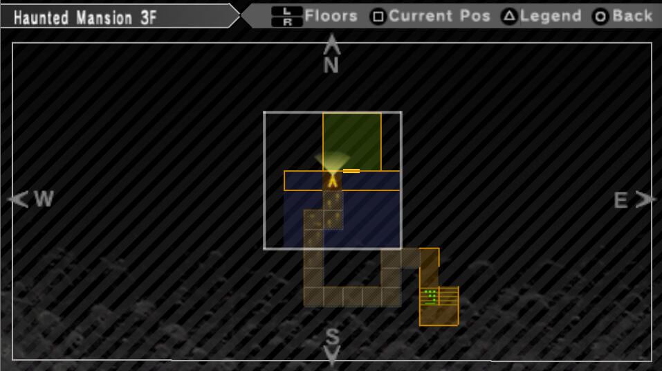 Once outside the dark room again, there is a staircase just to the south. Take them up to 3F.On 3F there is yet another dark room just ahead. Your directions from the tile just outside are: 2W, 2S, 4W, 4N, 1E, 2N. Screenshot below.